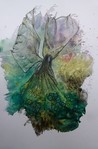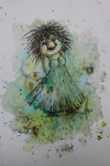 2016Getekend figuur die in weer en wind door het landschap doolt.